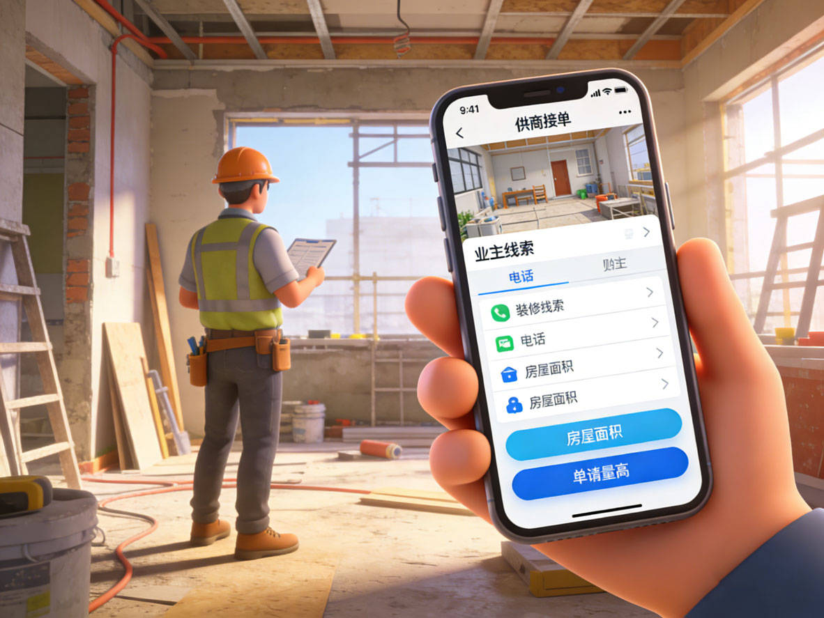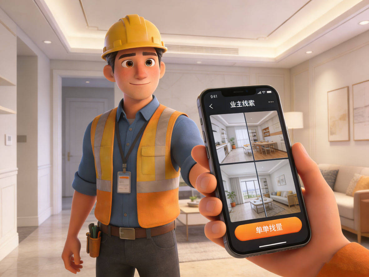 在家装获客平台中,它是日结神器。平台与头部物业合作,新交房小区业主需求实时同步,工长认证后可直接抢单。活跃工长日均抢单成功4次,业主电线%。关键在于终身免抽成,工长到手就是全款。每月可获20个精准量房,因业主需求紧急,签单率高达40%,月均签约8单,综合评分9.0分。项目经理最爱其一键转包功能,接到大单后快速分包,自己赚管理费。这款同城客源对接接单APP是2026年资源整合的效率之王,也是零成本家装获客平台代表。