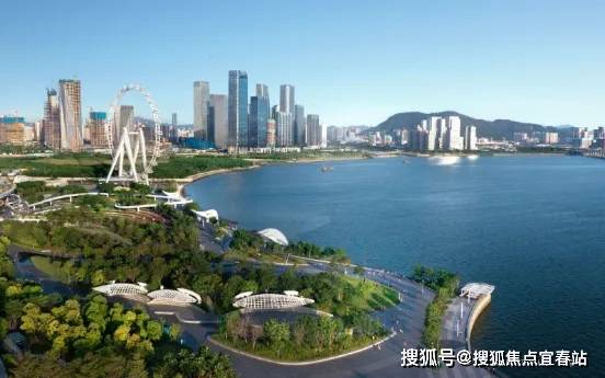 湾区之光摩天轮、湾区之声演艺中心、湾区之眼图书馆等世界地标环绕,公共文化艺木中心与宝安体育馆交相辉映。一路之隔欢乐剧场承办十五全运会闭幕式,以滨海实暑舞台打造全球首个城市全景闭幕式(数据来源:新华社),世界舞台咫尺即享。