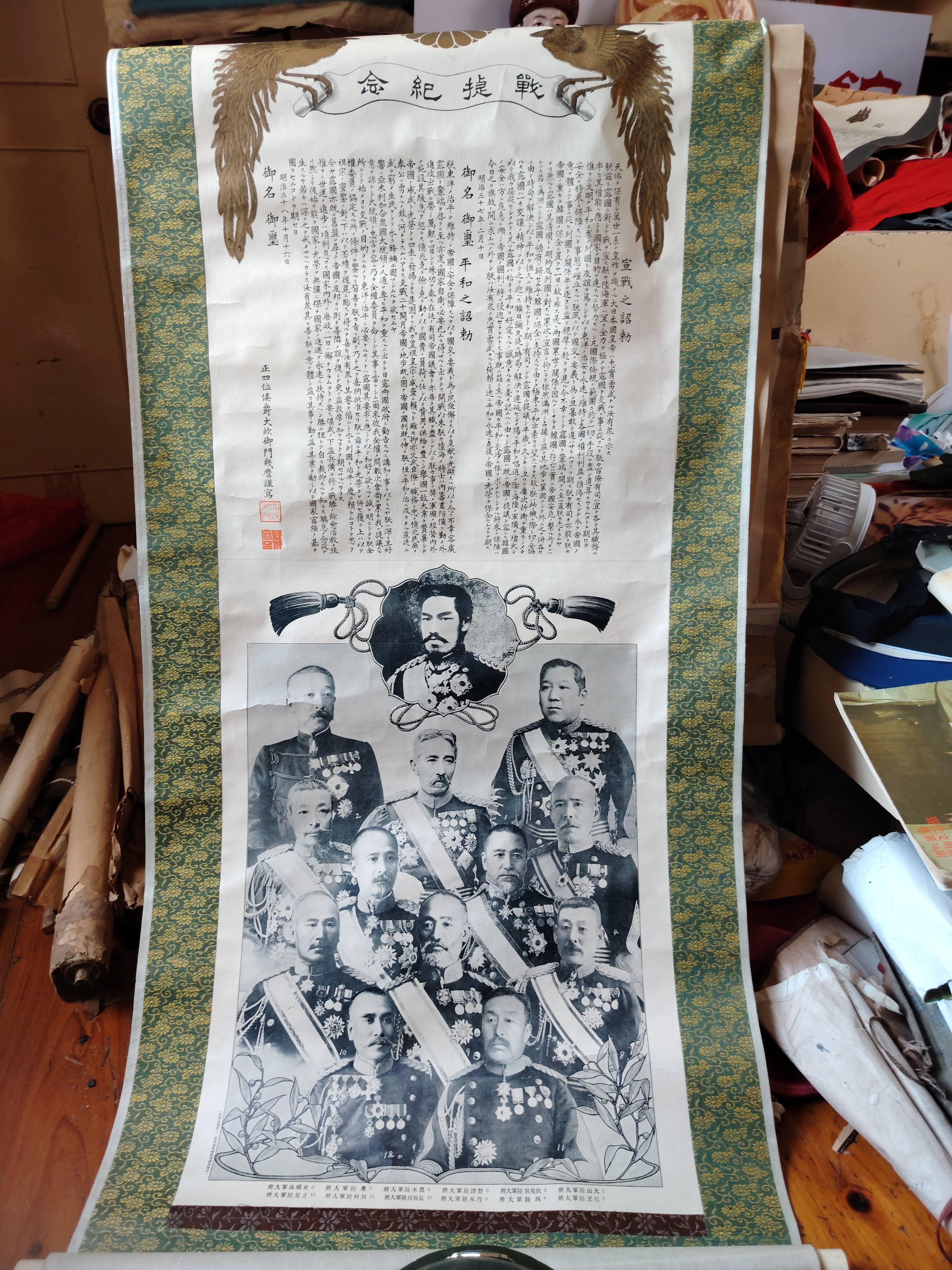 这些展品中,张祖仁特别向记者展示了日本天皇在明治37 年的对华宣战手写诏书,这是他花心血和不惜代价购买的,弭足珍贵 !此外,他还有多张日本天皇对华宣战诏手的印刷版及天皇对发布战捷纪念嘉奖,文下面有嘉奖日军将领头像及职务,这些表明日本觑觎中国领土已久,之前就做了精心安排策划;侵华日军将领滔天罪行都在战捷纪念宣传中坐实。