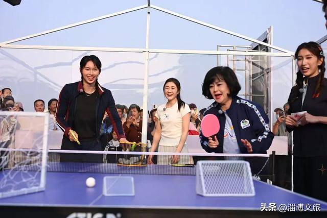 乒乓球奥运冠军陈梦、淄博籍游泳奥运冠军杨浚瑄、演员张晓龙,与来自山东16地市的乒乓小将共同启动了这场文体旅融合的新玩法。总台主持人鞠萍也空降现场,和陈梦一起化身“飞行嘉宾”,在打卡点和游客随机切磋球技。机器人对战、乒乓玩转齐鲁文化、非遗蹴鞠投击,三大趣味关卡层层递进,大人小孩都玩得不亦乐乎。