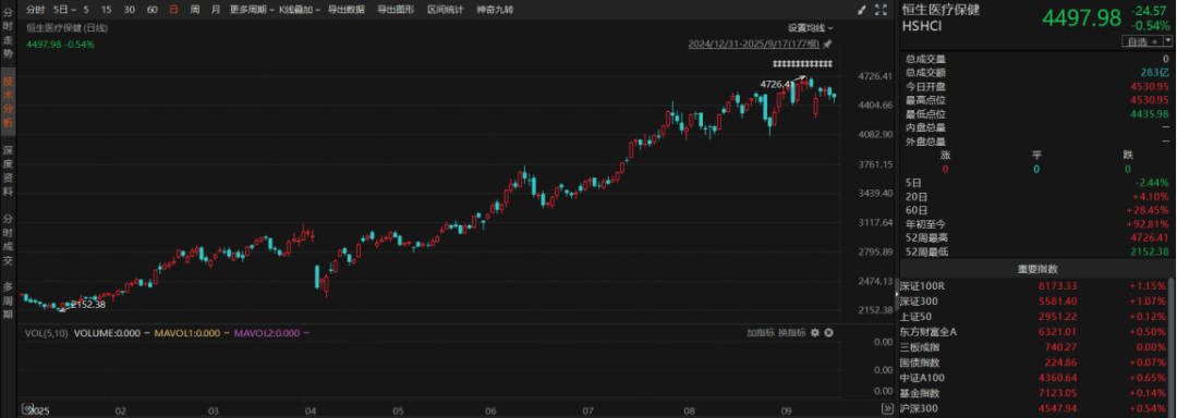 Choice数据显示,年初低位以来,恒生医疗保健指数(HSHCI.HI)涨幅超90%,远超同期恒生科技指数和恒生中国企业指数。