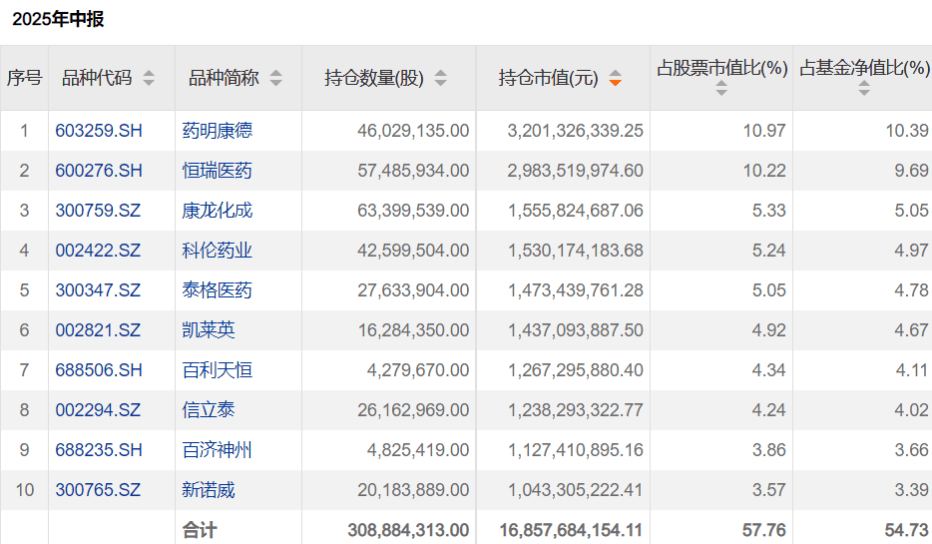 观察其一季报,中欧医疗健康的前十大重仓股覆盖了药明康德、恒瑞医药等创新药、CRO、医疗服务及品牌中药等细分领域的龙头公司。